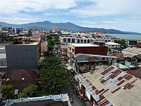 I then took a taxi to the Hotel Celebes, in the city, right on the harbor, with superb views from the restaurant 6th Floor - it had selected spontaneously in the Lonely Planet. 7 - 8 EUR I paid for the 13 km long taxi ride endless - endless, because the roads blocked in Manado are chaotic. Many potholes, large puddles on the road. The trip was certainly 45 minutes. Ca. 14 EUR cost me the room - aircon would have been great and it is.
